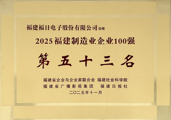 福建正加快建設制造強省,制造業增加值占GDP比重已升至全國第二位。百強企業成為支撐制造業結構升級、推動產業集群發展的重要力量。在這一高標準評選體系下,福日電子連續上榜,反映出公司在規模體量、創新能力、盈利質量及產業帶動等方面保持領先。